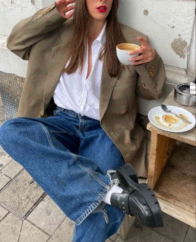 Në versionin e ditës, vishet me një xhinse selvedge blu të errët dhe mokasina me shkëlqim për një chic effortless. Në mbrëmje, kombinohet me një fund saten apo me pantallona cigarette të zeza, me taka të larta si pikë kulmore.